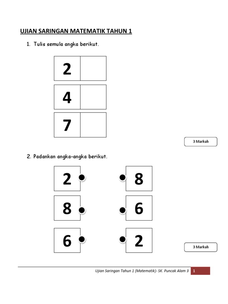 Ujian Saringan Matematik Tahun 1 Pdf